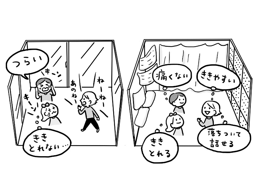 保育現場で子どもが大声を出したり部屋から飛び出したりする行動の背景には、「騒がしくて聞こえない」「音がつらい」といった要因が潜んでいるかもしれません。